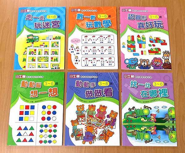 6. 動動手做做看》 塗、畫、剪、貼、折等動作,訓練幼兒雙手的肌肉力量與靈巧度,同時涵蓋多項能力訓練,包括數字、形狀、空間概念、生活常識等。